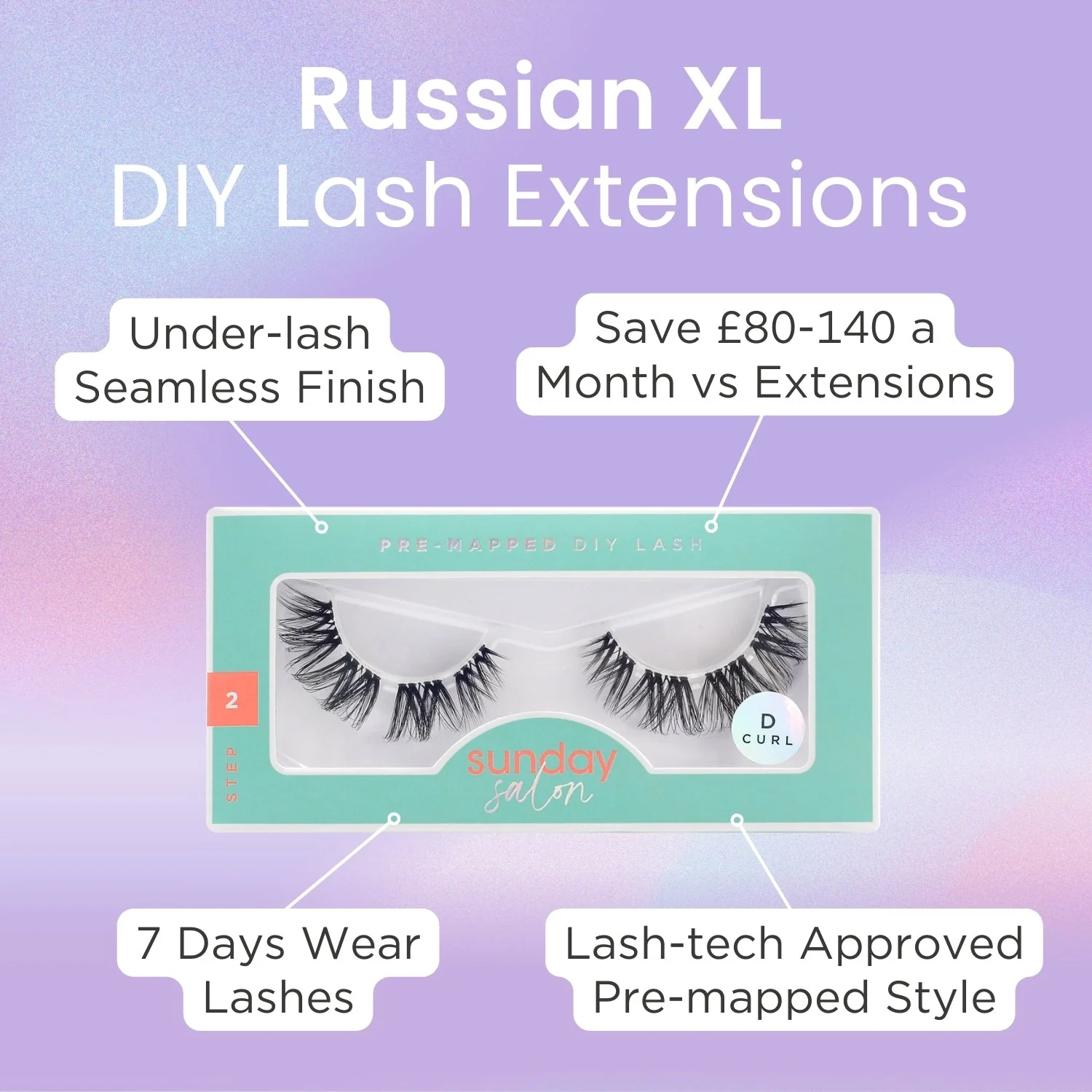 Sunday Salon’s Russian XL cluster lashes were designed with volume lovers in mind. D curl + density = statement.